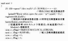 上位机是一台普通的PC机,共有2个串行口COM1,COM2,其运行RedHat8.0,实际上,如果不要求运行Gnome或KDE等图形界面,Linux对系统硬件的要求相当低。